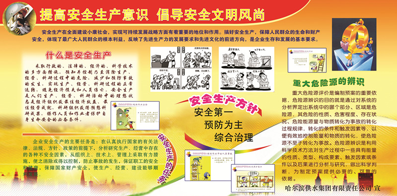 “提高安全生产意识,倡导安全文明风尚”宣传板