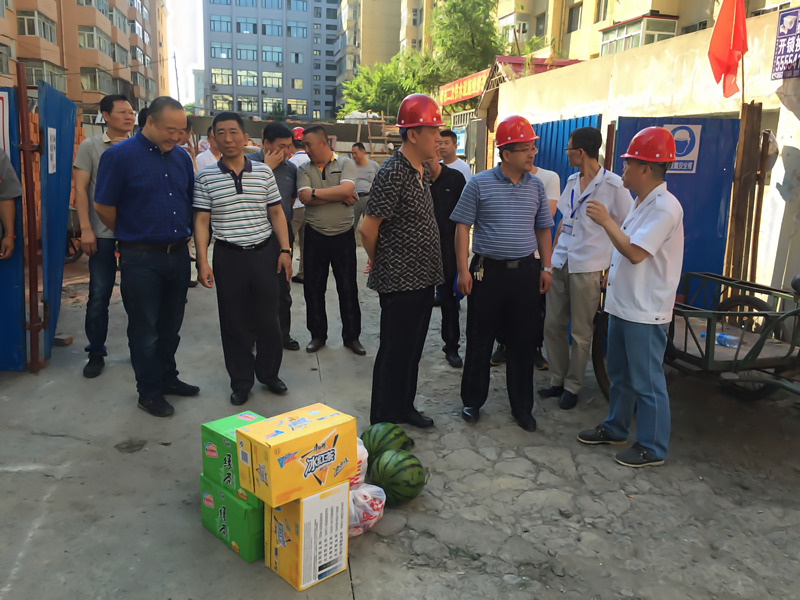 7月5日,集团公司董事长舒强、纪委书记王兴波、副总经理佟朝阳及工会主席杜健一同来到二次供水施工改造现场,看望、慰问奋战在一线的职工们,送上了清凉饮品及西瓜,送去了组织的关怀和问候。