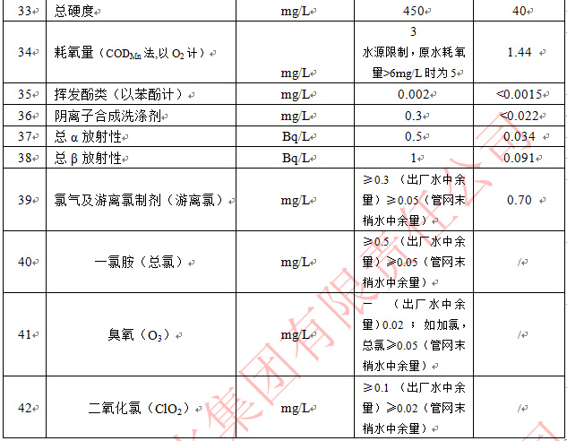 2020年6月出厂水常规42项目指标