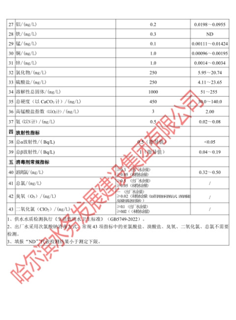 2024年1月出厂水常规43项目指标